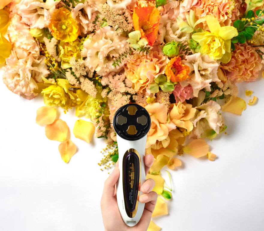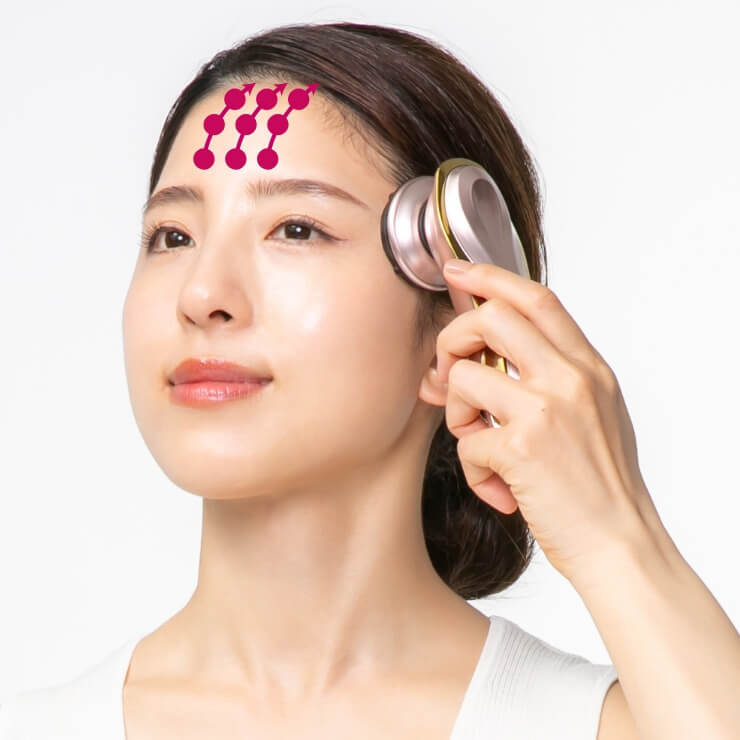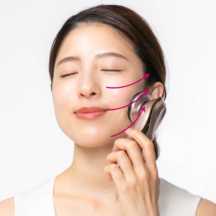 EMSとは、表情筋などのインナーマッスルを鍛える微弱電流の作用。