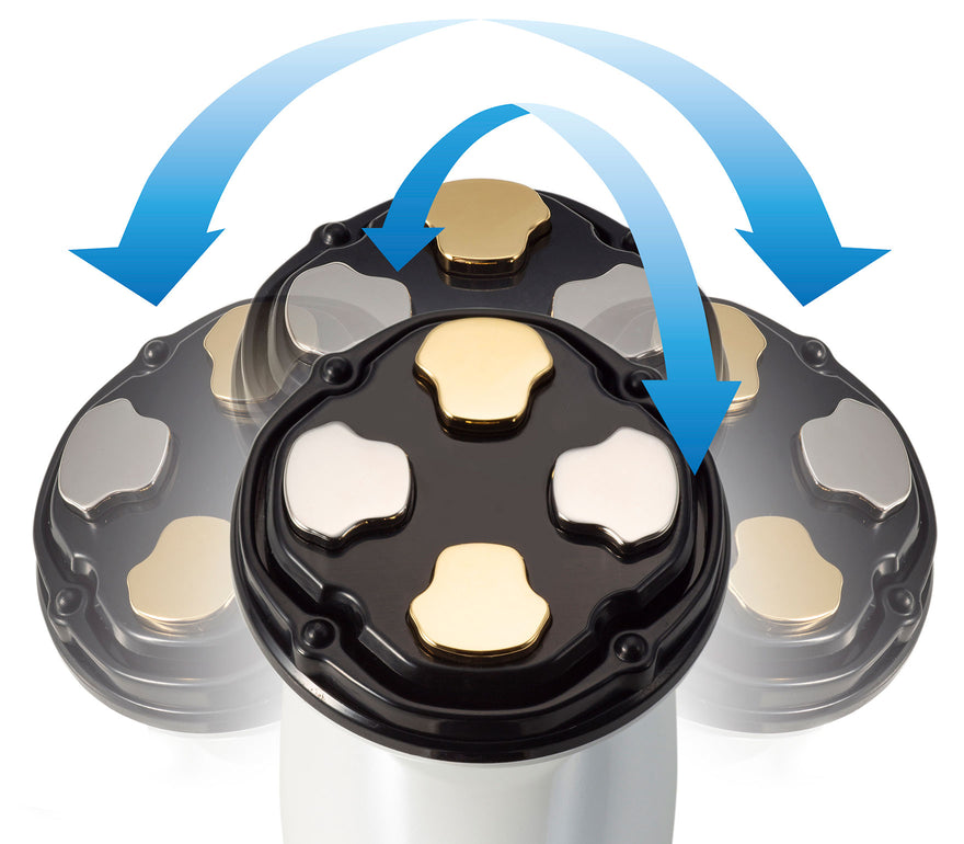 手のひらになじむすっきりしたフォルム、自在に動くヘッドは、フェイスのすみずみまでフィットさせます。