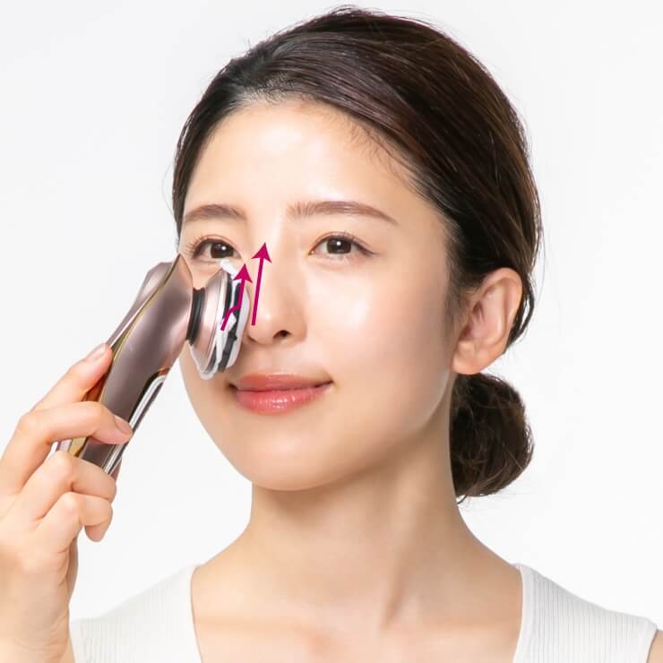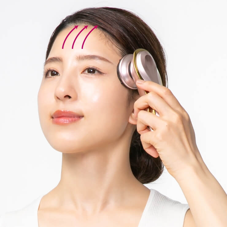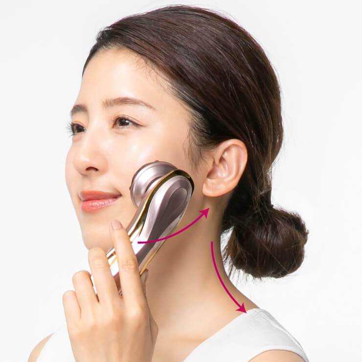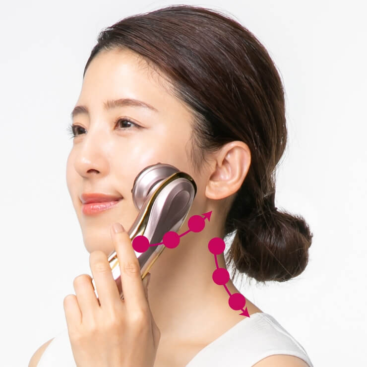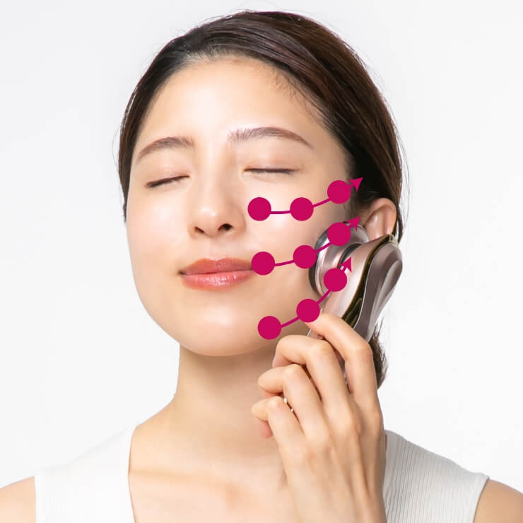 あごから、こめかみへ。内から外へ。肌をなでるようにすべらせます。